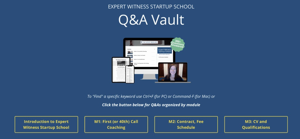 In full transparency, I do have an affiliate relationship with the Expert Witness Start Up School. That means that if you purchase the course, they give me a small payment (not from you)!