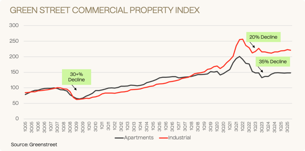 That’s not a small correction. It’s a 20–35% repricing across two of the largest real estate sectors. And in investing, repricing cycles often create the most interesting opportunities.